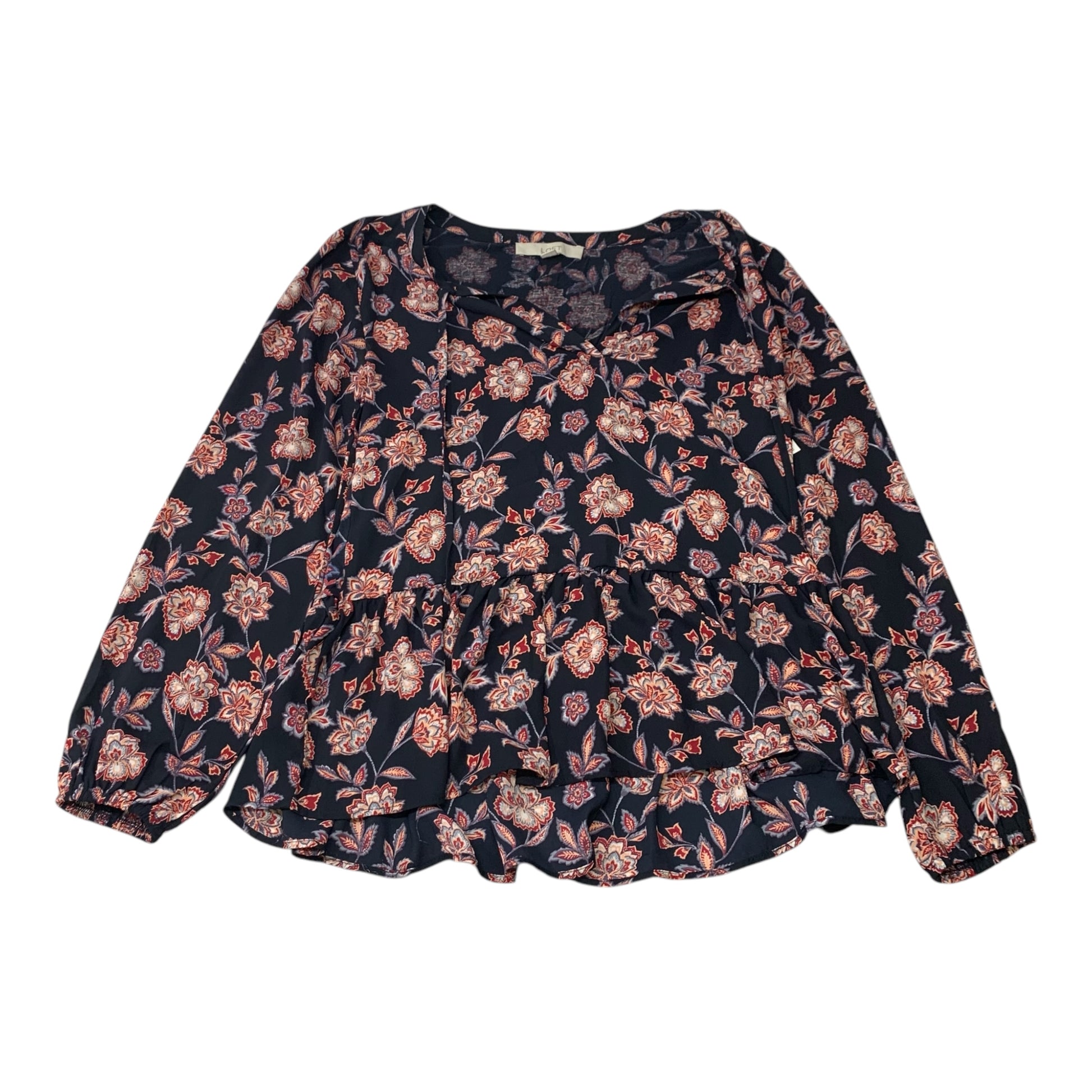 Blouse Long Sleeve By Loft In Blue & Red, Size: Xs